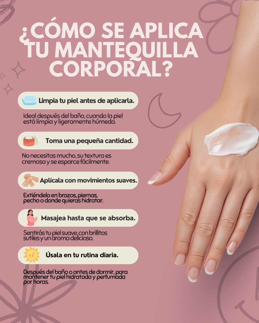 Por fin una mantequilla que no deja la piel pegajosa. Mi piel queda suave y con un brillito hermoso.